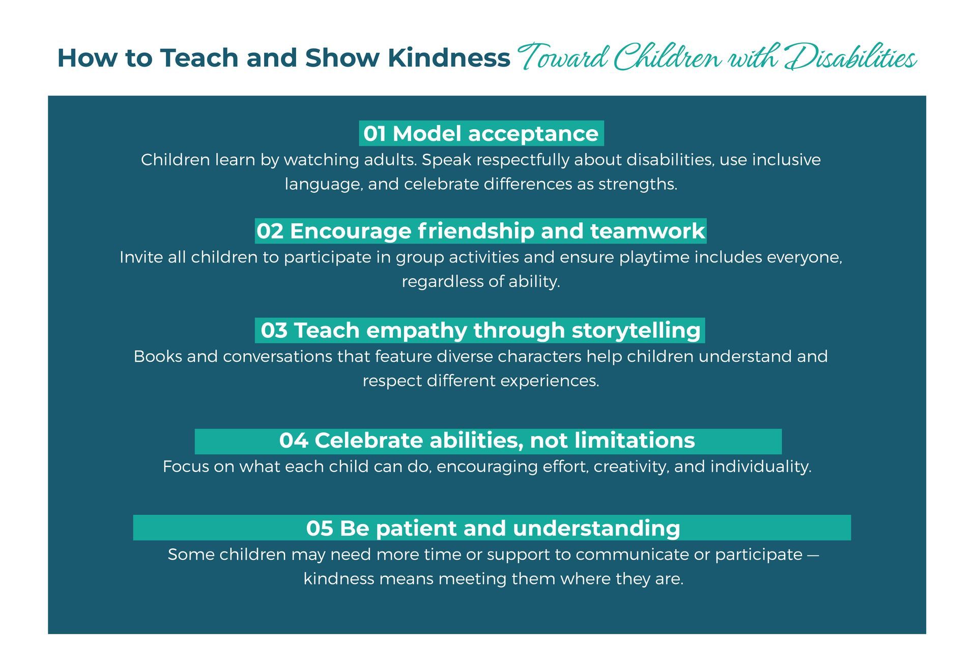 Acts of kindness help children with disabilities feel valued and capable. They also teach other children to look beyond differences and see the unique strengths that every individual brings to the world.
